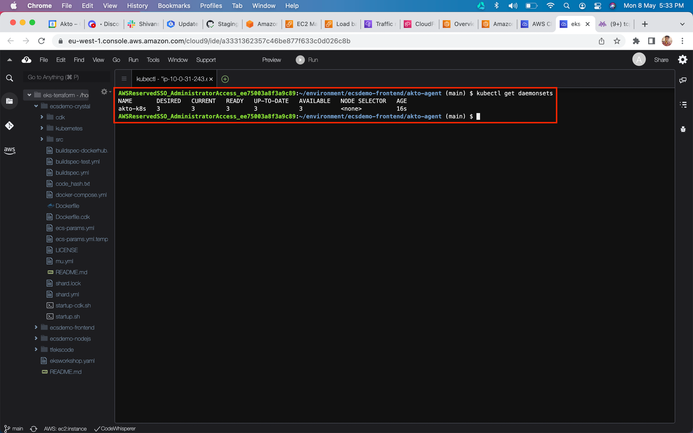 6. Run the command kubectl get daemonsets in terminal. It should show akto-k8s daemonset.